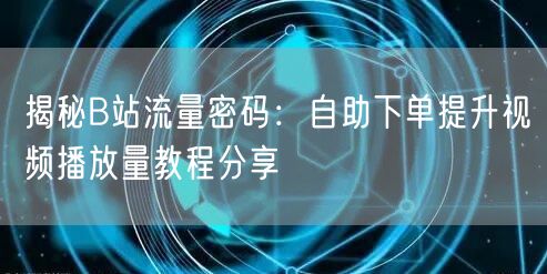 本文为大家揭秘了B站流量密码,分享了自助下单提升视频播放量的方法和教程。通过学习和实践这些内容,你将能够轻松地提升视频的播放量,获得更多的关注和曝光。当然,除了自助下单之外,还有很多其他的方法可以提升视频的播放量。我们希望这篇文章能够为你提供一些启示和帮助。未来,我们将继续探索更多的方法和技术,帮助大家在B站中获得更多的成功。