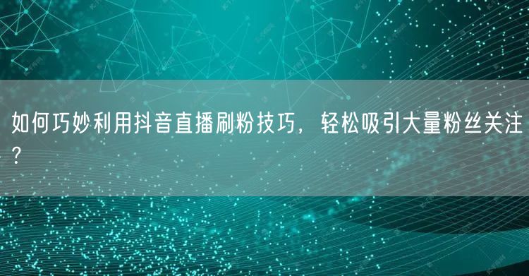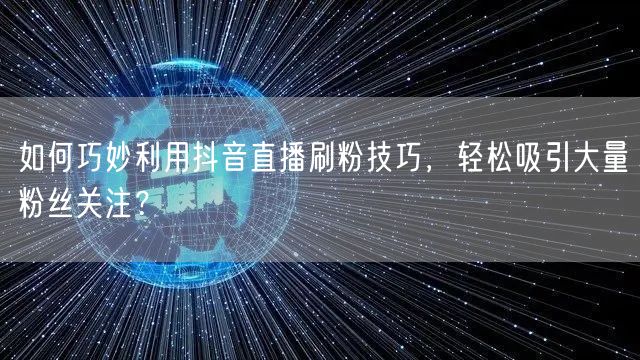 抖音直播作为当下热门的社交媒体平台,吸引了众多用户的关注和参与。如何巧妙利用抖音直播刷粉技巧,轻松吸引大量粉丝关注,成为了许多直播用户关注的焦点。本文将为你揭示一些有效的抖音直播刷粉技巧。