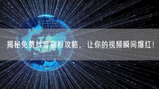 通过以上的免费抖音刷粉攻略,相信你可以快速提升抖音粉丝量,掌握短视频爆红秘诀。记住,优质的内容创作和互动营销是关键,同时结合免费刷粉技巧,轻松实现抖音营销目标。