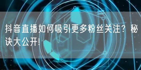 通过以上秘诀,主播们可以在抖音直播中吸引更多粉丝关注。关键在于优化个人资料、打造独特的直播内容、提高直播频率和稳定性、善于利用推广渠道、优化直播间的互动体验以及维护良好的粉丝关系。掌握这些要点,你也能在抖音直播中脱颖而出,吸引更多粉丝关注!