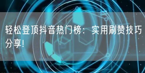 通过掌握上述实用刷赞技巧,你可以在抖音平台上轻松登顶热门榜,提高内容曝光率,吸引更多关注和粉丝。同时,记得保持内容的真实性和质量,与观众建立良好的互动关系,建立长期的粉丝基础。