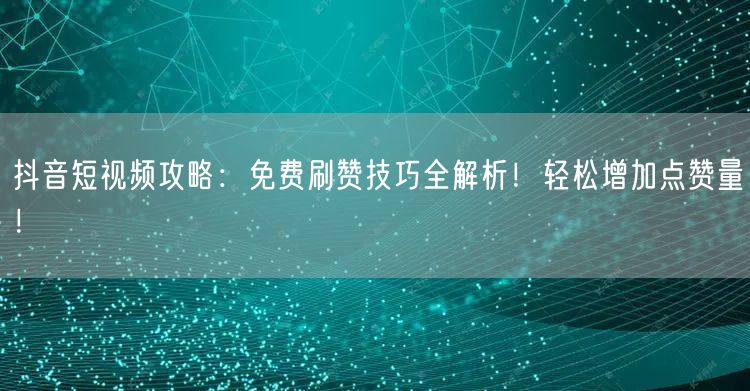 通过本文的抖音短视频攻略和免费刷赞技巧全解析,相信你已经掌握了如何轻松增加点赞量的方法。在实际操作中不断尝试和优化,相信你的抖音短视频一定能脱颖而出!
