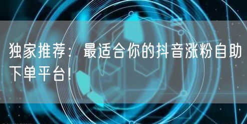 摘要:本文将为你独家推荐一个安全可靠的抖音涨粉自助下单平台,让你轻松实现抖音粉丝快速增长,提升个人影响力。我们将从平台的特色功能、用户体验、安全性以及实际操作效果等方面进行详细解析,助你快速了解并选择最适合你的涨粉方式。
