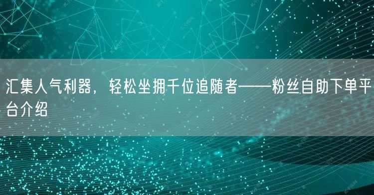 随着互联网的发展,聚集人气、扩大影响力成为了众多个人及品牌的追求。今天,我们将为大家介绍一款汇集人气利器——粉丝自助下单平台,帮助用户轻松坐拥千位追随者。