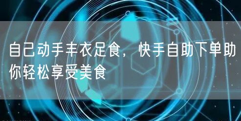 总之,自己动手丰衣足食的理念与快手自助下单相结合,让我们可以轻松地享受到美食。不仅节省了时间,还提升了用餐体验。让我们一起通过快手自助下单,享受美食带来的快乐吧!