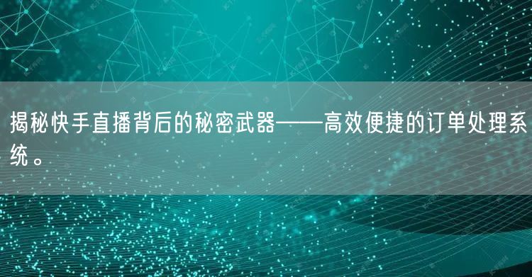 快手直播背后的高效便捷订单处理系统,是其成功的关键之一。它通过智能化、自动化的处理方式,提高订单处理效率,提升用户体验,支撑大规模交易。未来,随着技术的不断发展,快手直播的订单处理系统将会更加完善,为用户带来更好的体验。