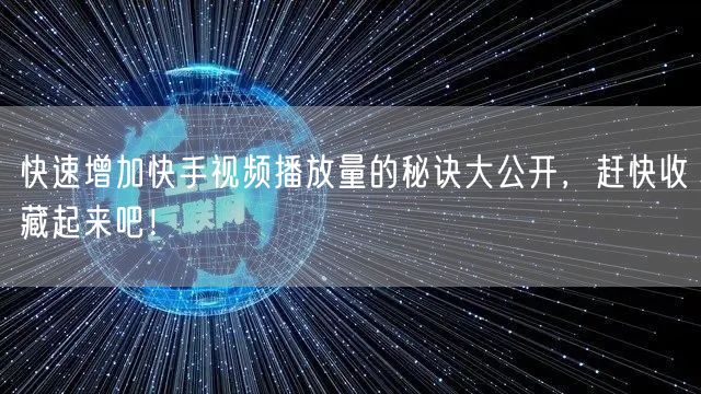 通过以上秘诀和技巧的学习和实践,你的快手视频播放量将会有显著提升。赶快收藏起来吧,随时复习提升你的快手创作技巧!让我们一起努力,成为快手平台的热门创作者!