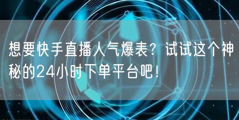 通过这个神秘的24小时下单平台,你可以轻松实现快手直播人气爆表,吸引更多观众关注和互动。赶快行动起来,让你的直播事业更上一层楼吧!