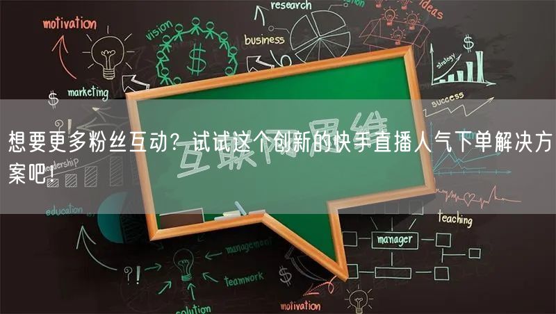 随着互联网的普及和社交媒体的快速发展,越来越多的人加入到网络直播的行列中,尤其是快手直播这样的平台。无论是主播还是商家,都希望通过直播吸引更多粉丝互动,扩大影响力。然而,单纯的直播内容并不能完全满足这一需求,需要一种创新的解决方案来提高人气和粉丝参与度。本文将介绍一种创新的快手直播人气下单解决方案,帮助主播更好地实现目标。