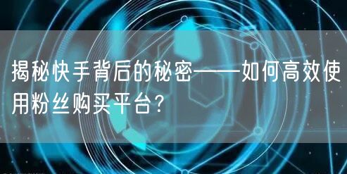随着移动互联网的普及,短视频平台如快手等已经成为人们日常生活中不可或缺的一部分。在这个竞争激烈的市场中,如何高效使用粉丝购买平台,提升自己在快手的影响力,成为了许多用户关注的焦点。本文将带你一起揭秘快手背后的秘密,探讨如何更好地利用粉丝购买平台。