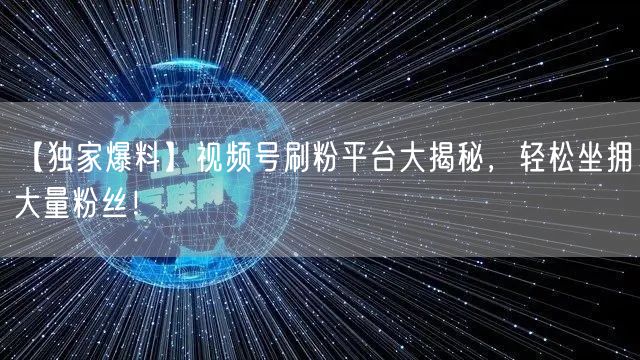 随着短视频的兴起,各大视频号竞争愈发激烈。如何快速坐拥大量粉丝,成为众多视频号主的追求。近期,市面上出现了一种神秘的“视频号刷粉平台”,传闻只要通过该平台,粉丝量便能迅速增长。今天,就让我们一起揭开这个平台的神秘面纱。