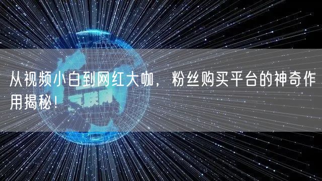 粉丝购买平台在网红成长过程中起到了重要作用。对于视频小白来说,合理利用这些平台,发挥自身的才华和努力,也有可能实现从视频小白到网红大咖的华丽转身!让我们一起见证这个神奇的过程吧!