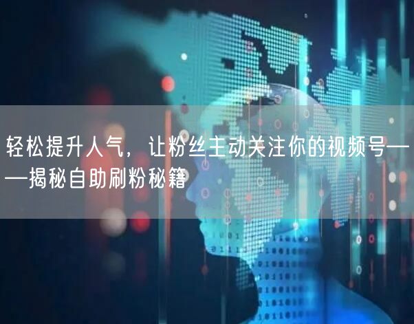 在数字化时代,拥有高人气和大量粉丝的视频号对于个人品牌和影响力的提升至关重要。本文将为你揭示自助刷粉的秘籍,帮助你轻松提升人气,吸引更多粉丝主动关注你的视频号。