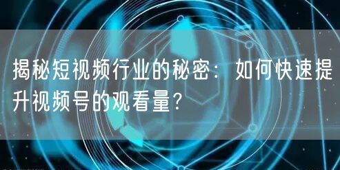随着移动互联网的普及,短视频行业迅速发展,越来越多的人加入到短视频行业中来。然而,在这个竞争激烈的市场中,如何快速提升视频号的观看量成为了众多创作者关注的焦点。本文将为你揭秘短视频行业的秘密,分享一些快速提升视频号观看量的方法。