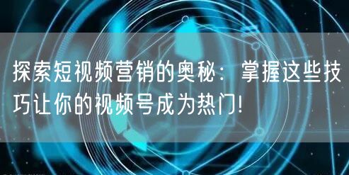 随着移动互联网的普及,短视频已成为大众获取信息的重要途径。越来越多的个人和企业开始涉足短视频领域,希望通过视频号吸引关注,实现品牌传播和营销目标。那么,如何在这个竞争激烈的市场中脱颖而出,让您的视频号成为热门?本文将带您探索短视频营销的奥秘,分享成为热门视频号的技巧与策略。