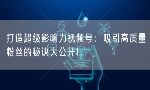 总之,打造超级影响力视频号需要创作者在定位、品牌、内容、互动、推广和数据分析等方面下功夫。只有不断学习和实践,才能吸引更多高质量粉丝,实现视频号的快速发展。
