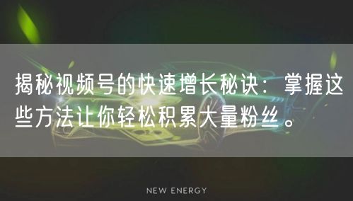 掌握这些方法,让您轻松成为视频号领域的佼佼者!