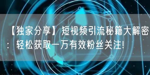 随着互联网的普及和移动设备的普及,短视频已成为大众获取信息的重要途径之一。越来越多的个人和企业通过短视频平台获取粉丝,实现品牌宣传和销售增长。本文将为大家揭秘短视频引流秘籍,教你如何轻松获取一万有效粉丝关注。