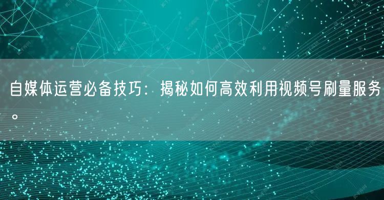 关键词:自媒体运营、视频号刷量服务、高效利用、运营技巧。