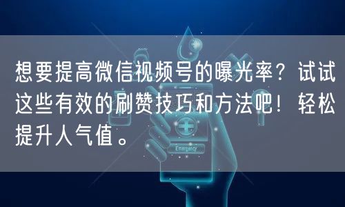 想要提高微信视频号的曝光率,吸引更多观众关注和点赞吗?试试这些有效的刷赞技巧和方法吧!轻松提升你的微信视频号人气值。