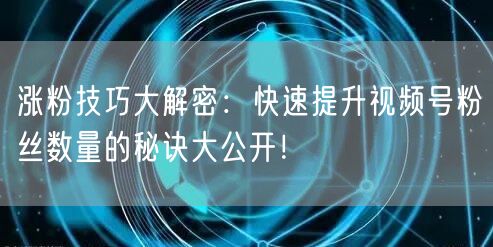 通过以上涨粉技巧,相信你能快速提升视频号粉丝数量。但需要注意的是,粉丝数量的增长只是一个开始,如何留住粉丝、提高粉丝活跃度同样重要。持续提供高质量内容,与粉丝保持良好互动,才是长期吸引粉丝的关键。