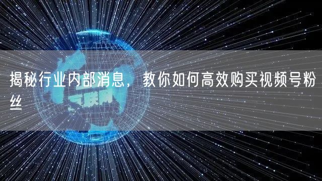 在当今数字化时代,社交媒体已成为人们生活中不可或缺的一部分。其中,视频号作为新兴的社交内容形式,吸引了大量用户的关注和参与。对于希望扩大自身影响力的用户来说,获取视频号粉丝成为了一项重要的任务。本文将揭秘行业内部消息,教你如何高效购买视频号粉丝,帮助你快速增加粉丝数量,提升影响力。