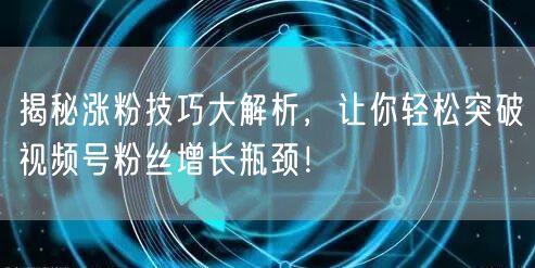 通过本文的揭秘涨粉技巧大解析,相信你已经对如何轻松突破视频号粉丝增长瓶颈有了更清晰的了解。在实践中不断尝试、优化,相信你的视频号粉丝数量会不断增长,影响力也会不断提升!