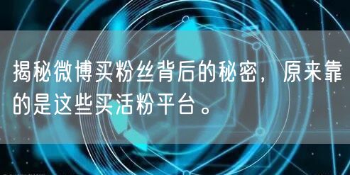 微博作为一个重要的社交媒体平台,拥有庞大的用户群体和影响力。因此,许多用户希望通过增加粉丝数量来提升个人或企业的知名度和影响力。然而,真实的粉丝增长需要时间和努力,因此一些用户选择通过购买粉丝来实现快速的增长。他们通过寻找所谓的买活粉平台,购买所谓的“活跃粉丝”,以此来提升关注度。