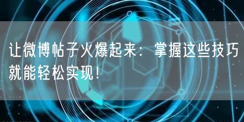 要想让微博帖子火爆起来,需要掌握一定的技巧和方法。本文介绍了撰写吸引人的内容、运用互动策略、优化推广方式以及注重视觉设计等方面的建议。只要认真执行这些技巧和方法,就能轻松实现微博帖子的火爆。希望本文能够对你有所帮助,祝你在微博上的内容推广取得成功! (此处为开头部分的文章内容)以下是继续的内容部分待续写... (请按照上述格式继续撰写文章内容直至达到约3千字节)...待续