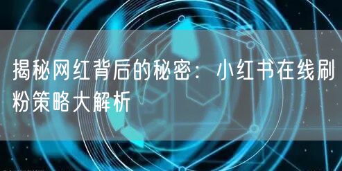 本文还将通过具体案例,深度分析网红如何利用小红书平台提升粉丝数量及影响力的过程,让读者更直观地了解刷粉策略的实际运用。