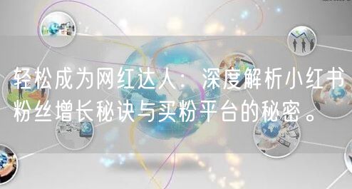 随着社交媒体的普及,越来越多的人渴望成为网红达人。小红书作为一个重要的社交平台,吸引了众多用户和内容创作者。本文将深度解析小红书粉丝增长秘诀,并揭露买粉平台的真相,帮助读者轻松成为网红达人。