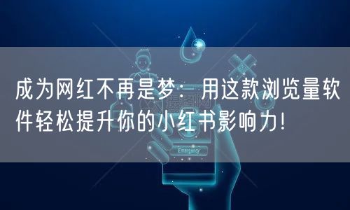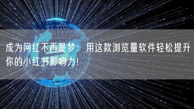 如今,社交媒体的影响力日益扩大,成为网红不再是遥不可及的梦想。只要掌握正确的方法,借助有效的工具,你也能轻松提升在小红书上的影响力。今天,我要向大家介绍一款能够帮助你实现这一目标的浏览量软件。