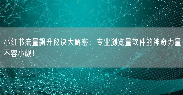 在提升小红书流量方面,专业浏览量软件发挥了巨大的作用。这些软件可以通过一系列技术手段,提高你的内容在小红书平台上的曝光率。