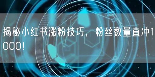 在这个数字化时代,社交媒体平台已成为人们获取信息、交流互动的重要渠道。小红书作为一个领先的社交平台,拥有庞大的用户群体和巨大的潜力市场。如何在这个平台上快速吸引粉丝,扩大影响力呢?本文将为您揭秘小红书涨粉技巧,助您轻松突破粉丝数量直冲1000!