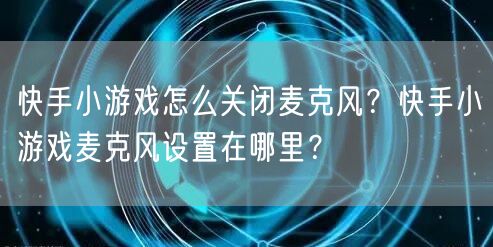 以上就是关于快手小游戏怎么关闭麦克风的详细步骤解析。希望对你有所帮助,让你在享受游戏的同时,也能保护好自己的隐私。